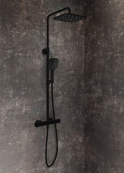 - composition de la douche : pommeau de douche carré en ABS 25 cm ; douchette à main – 3 fonctions, le pommeau de douche peut également être tourné sur les côtés