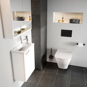 Beau et fonctionnel Il est particulièrement adapté pour les toilettes et pour les salles de bains extrêmement petites où il peut être installé dans un angle. S'accorde avec les autres produits de la gamme Classic II.