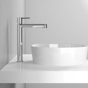 Le mitigeur sur pied extra-long est parfait pour les vasques à installer sur un plan de travail. De plus, l'aérateur flexible garantit que le débit d'eau est toujours dirigé directement vers le drain afin que l'eau ne s'écoule pas. Le design minimaliste des mitigeurs correspond à tout lavabo MODERNE.