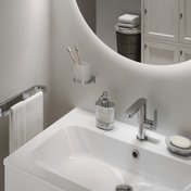 Distributeur de savon à placer sur la vasque. Pour une solution complète et une salle de bains harmonieuse, nous vous recommandons de l'associer aux autres accessoires Chrome II. Pour le nettoyage extérieur, nous vous recommandons d'utiliser le nettoyant RAVAK pour chrome.