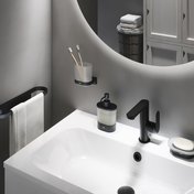 Le porte-savon en design Chrome II est très pratique dans la salle de bain pour un lavage rapide des mains. Le produit est disponible en chrome et noir mat.