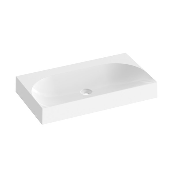 Une vasque en résine de synthèse Lite à installer au mur ou à encastrer dans un meuble suspendu, sans trop-plein. Version blanche. Version gauche. Sans trou - à associer avec un mitigeur encastré.